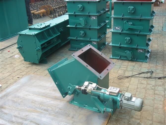 該閥主要由閥體、閥軸、閥板、曲柄機構、電動推桿(電液動推桿或手動機構)等組成。工作時電、液動推桿的直線往復運動,(手動由外力)通過曲柄帶動閥軸、閥板作一定角度的擺動,從而達到控制物料流向,分送物料之目的。